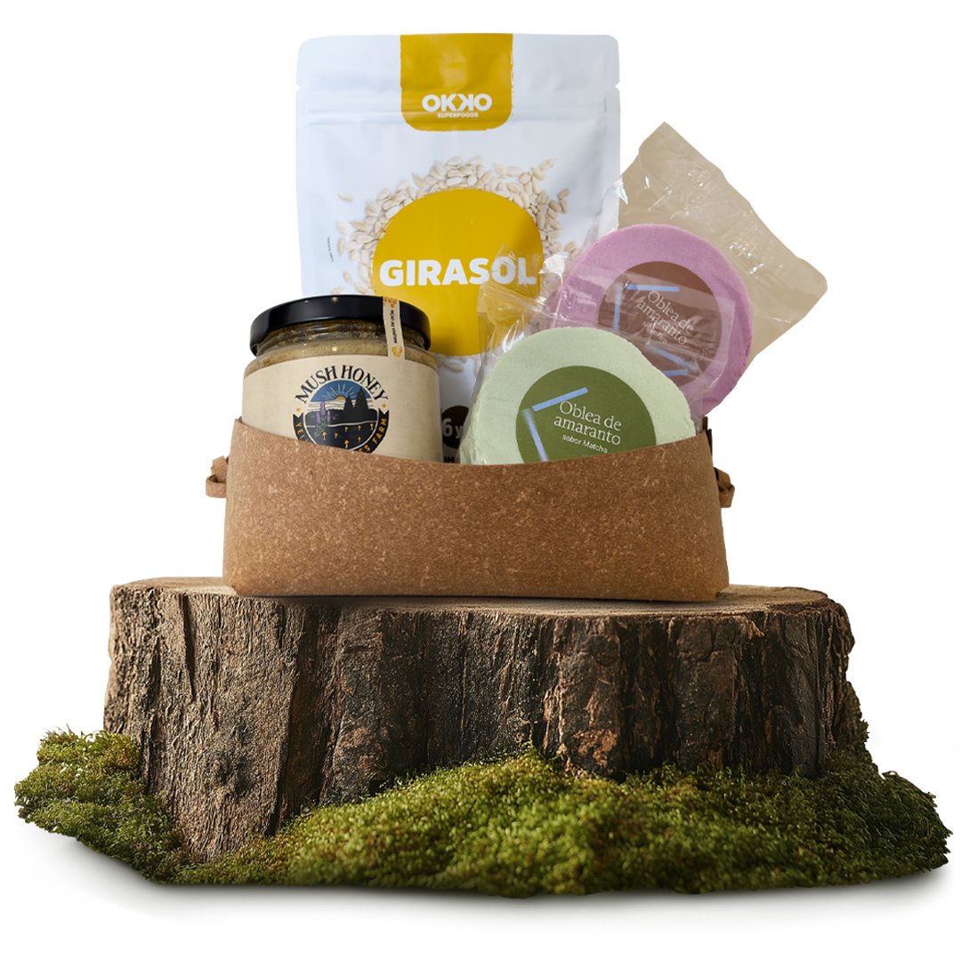 Canasta de regalo saludable con productos para un balance nutritivo en la rutina.